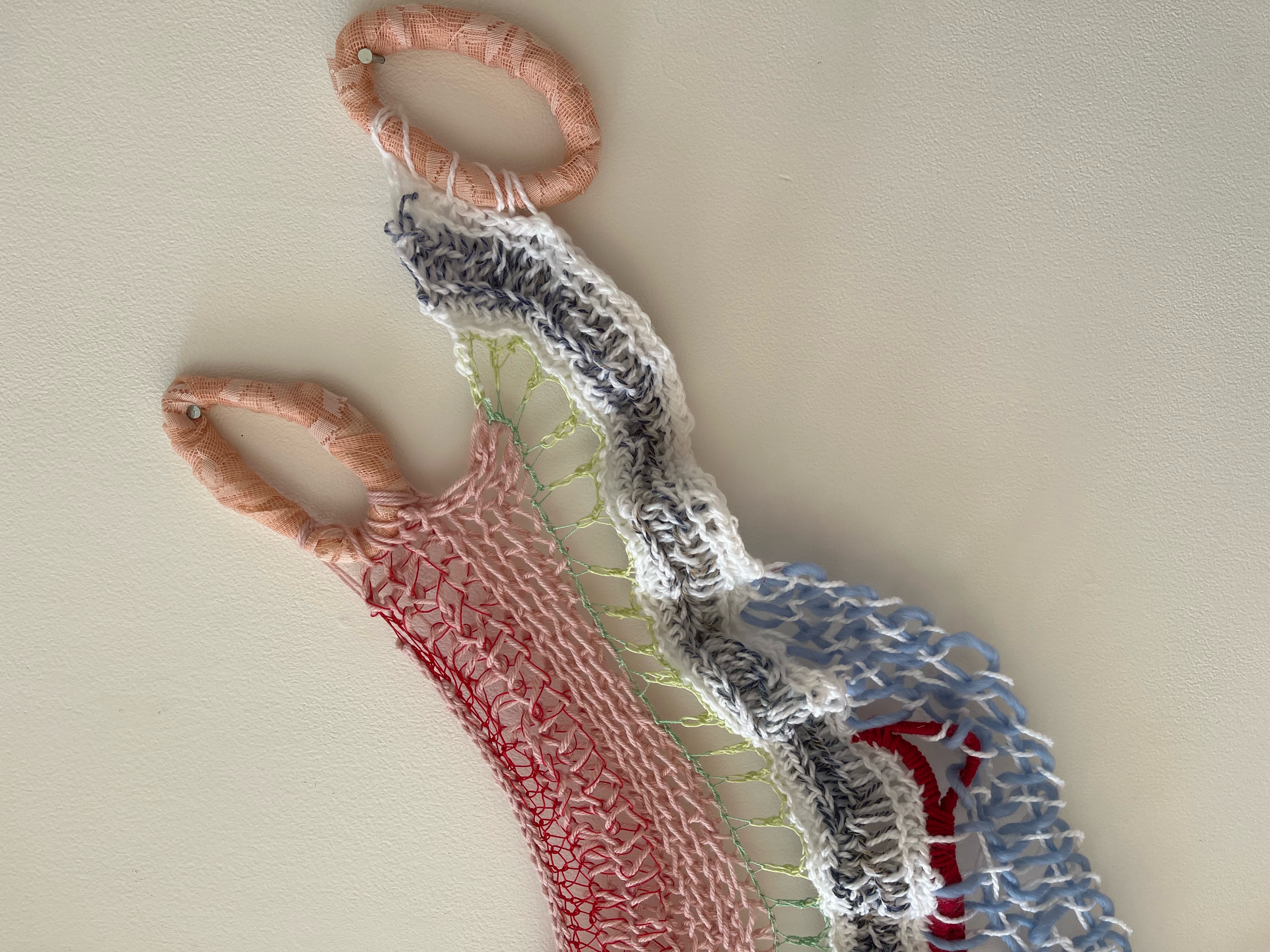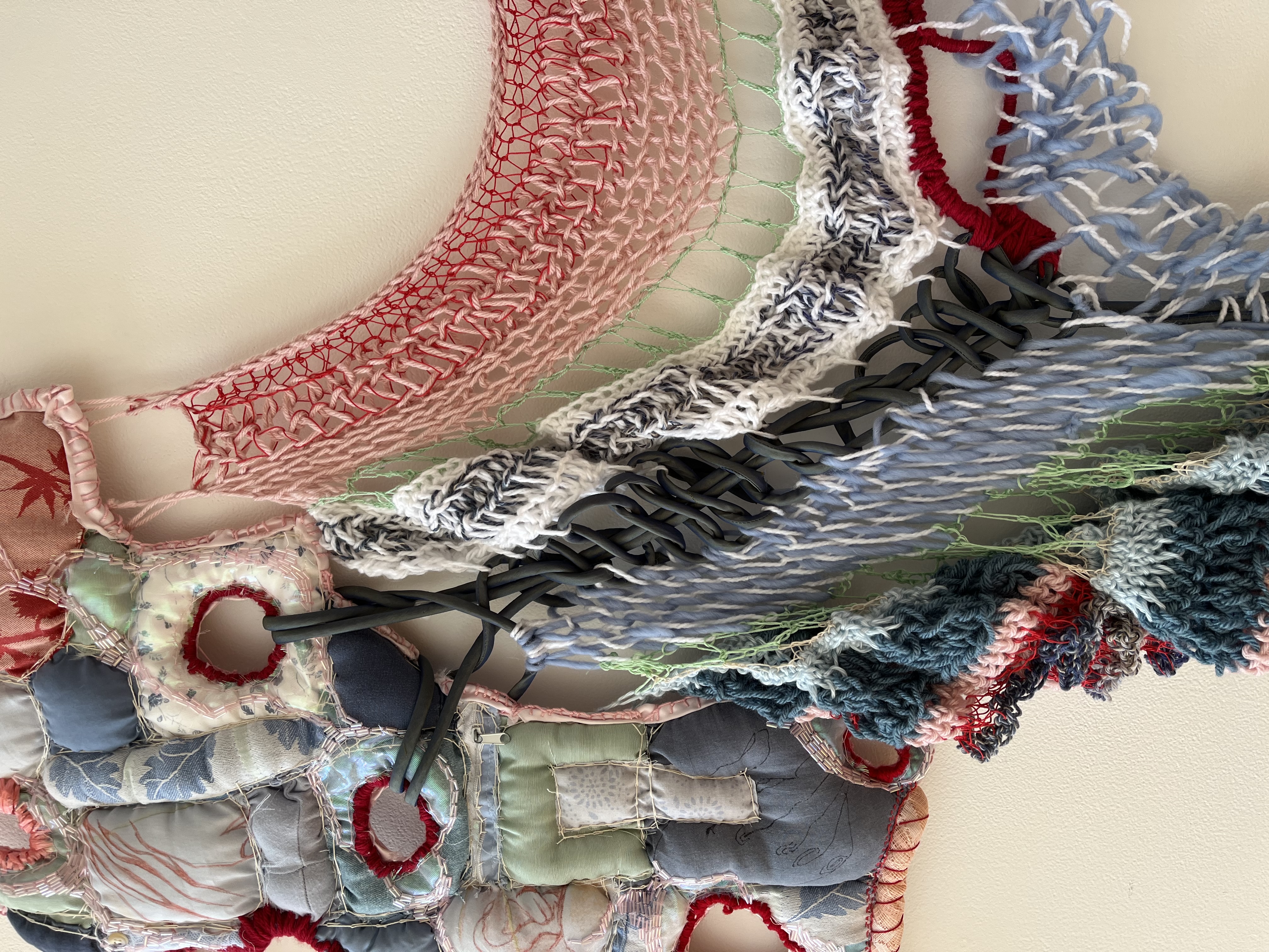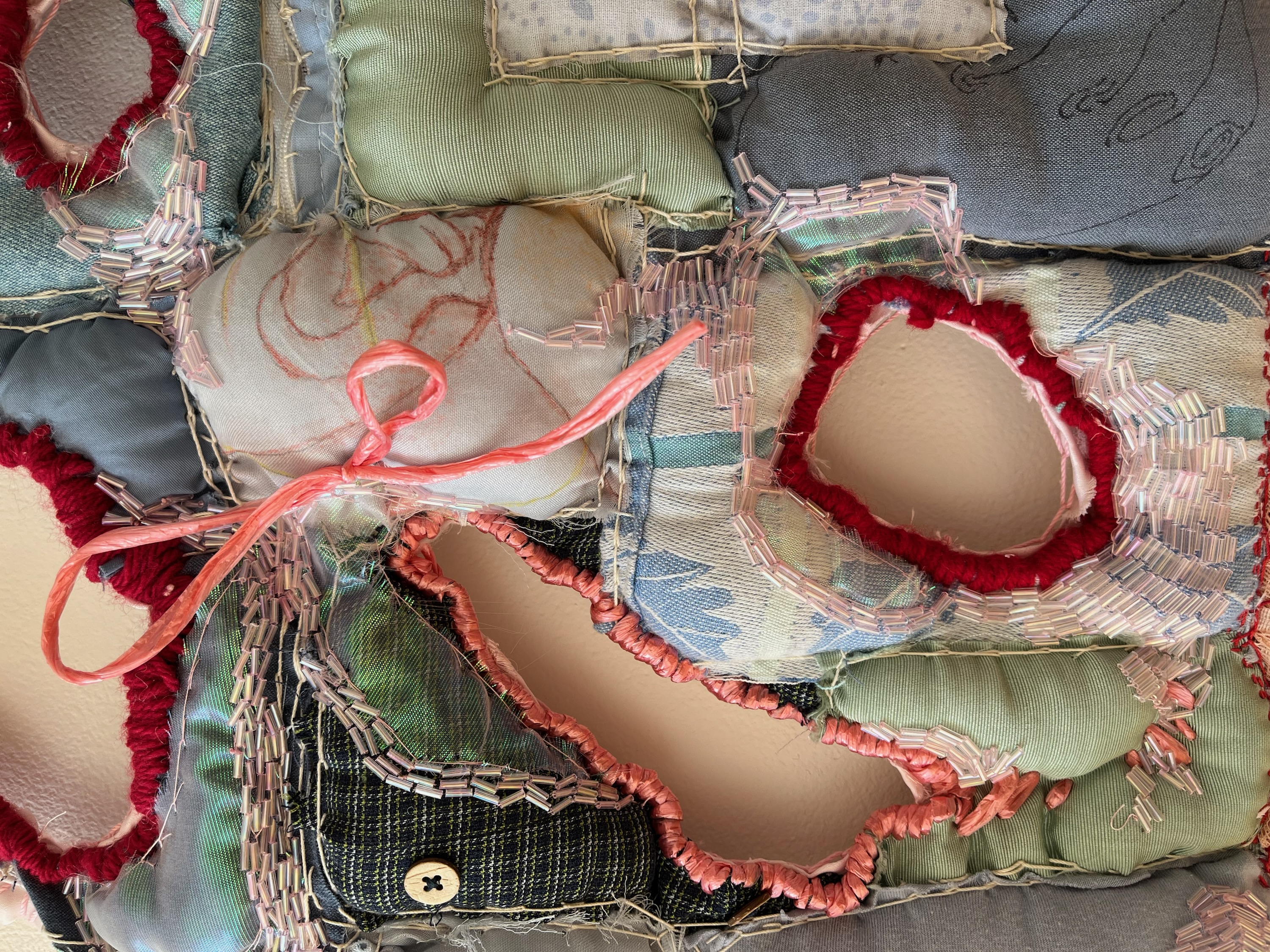 Cotton cording, glass beads, embroidery floss,acrylic and wool yarn, plastic multi tie, pillow stuffing, ink, crayon, bed linen, clothing, curtains, fusible cotton batting